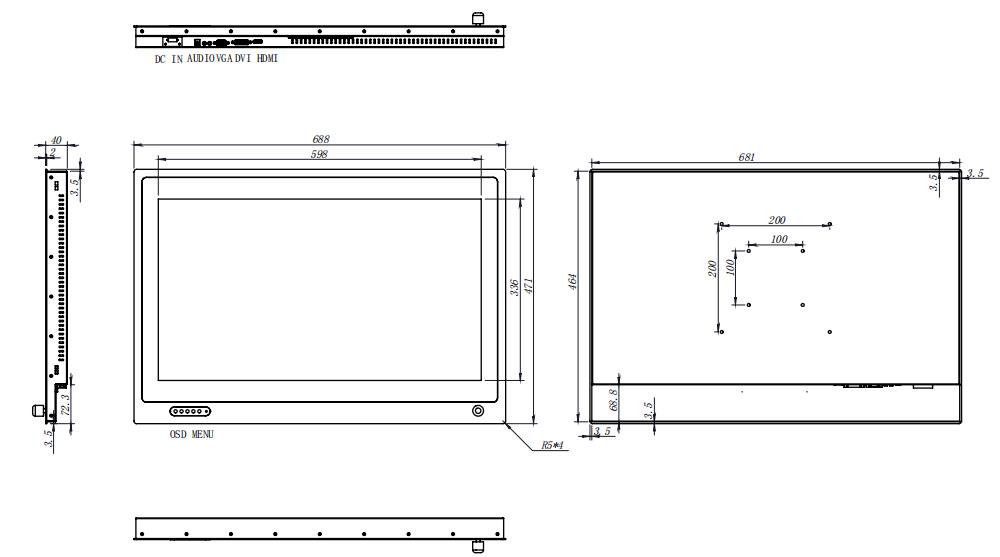 | OSD control | Brightness, contrast ratio, auto adjustment, H/V position, language select etc. |